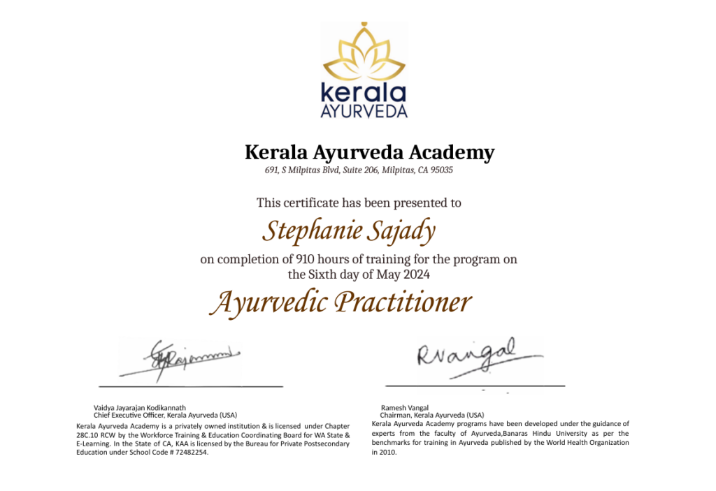 Certified Ayurvedic Wellness Counselor and Ayurvedic Practitioner